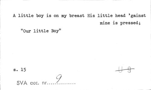 //// A little boy is on my breast His little head 'gainst //// mine is pressed; //// "Our little Boy" s. 15 —f~-9~ //// 9 //// SVA ccc. nr...<... ////