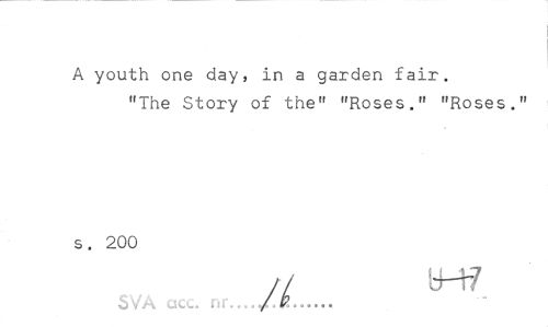 //// A youth one day, in a garden fair. //// "The Story of the" "Roses." "Roses." //// s. 200 //// // tH7 //// Sv A acc. f«r... / V... ////