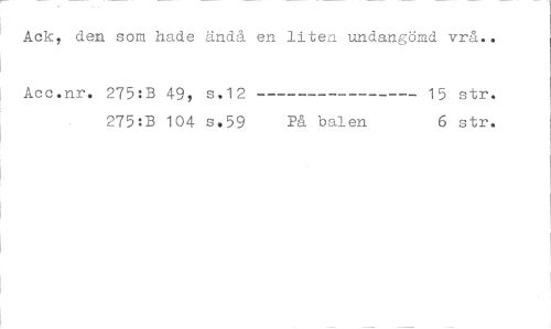 //// Ack, den som hade ändå en liten undangömd vrå.. //// Aec.nr. 275:B 4-9, s.12---15 str. //// 275:B 104 s.59 På balen 6 str. ////