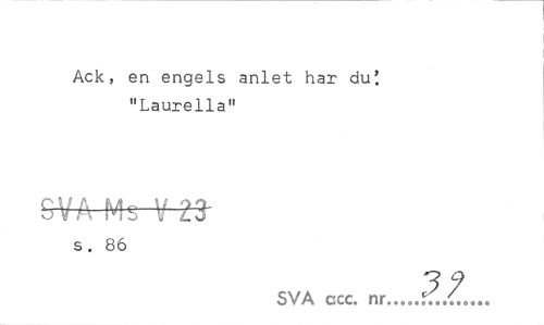 //// Ack, en engels anlet har du'. "Laurella" //// GVA Ms V 23- //// s. 86 //// SVA ccc. nr... ////
