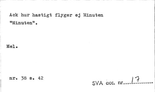 //// Ack hur hastigt flyger ej Minuten "Minuten". //// Mel. //// I //// nr. 38 s. 42 I O //// SVA acc. nr...!..:... ////