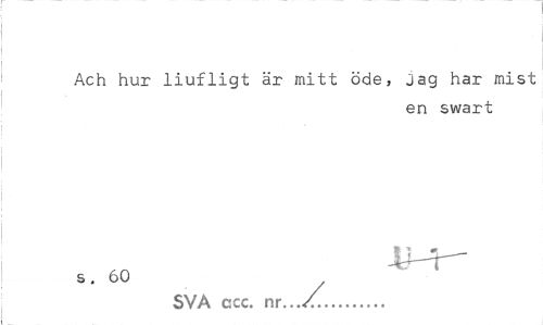 //// Ach hur liufligt är mitt öde, jag har mist //// en swart //// s. 60 ^ ' SVA ccc. nr.../... ////