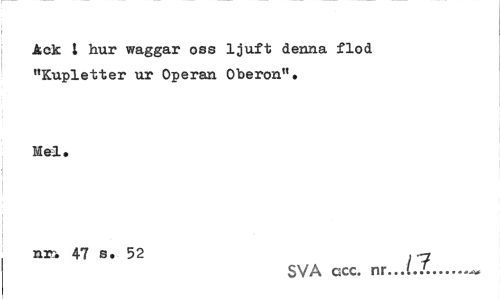 //// Ack l hur waggar oas ljuft denna flod "Kupletter ur Operan Oberon". //// Mel. //// nr* 47 s. 52 . -n //// SVA acc. nr...i.T... ////
