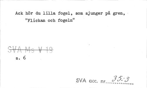 //// Ack hör du lilla fogel, som sjunger på gren, "Flickan och fogeln" //// SVA Ms V "i^- //// s. 6 //// SVA ccc. ////