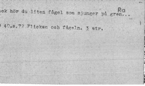 //// Ra //// >k hör du liten fågel som sjunger på gren... //// I //// 40,8,72 Flickan och fågeln, 3. str. I //// i //// I ////