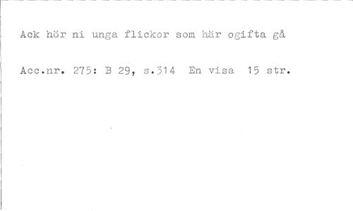 //// Ack hör ni unga flickor som här ogifta gå Acc.nr. 273: 3 29, s.314 En visa 15 str. ////