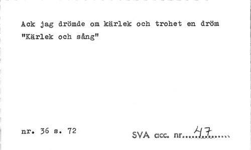 //// Ack jag drömde om kärlek och trohet en dröm "Kärlek och sång" //// nr. 36 s. 72 syA ^ ... ////