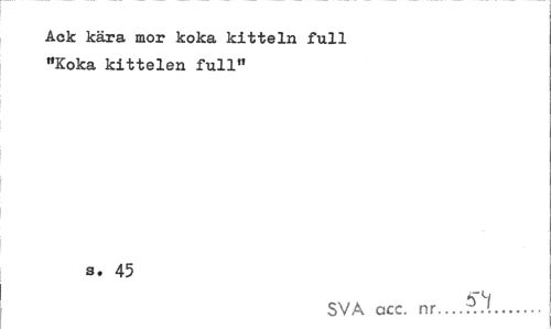 //// Ack kära mor koka kitteln full "Koka kittelen full" //// s. 45 //// SVA acc. nr...?..'... //// .1 ////