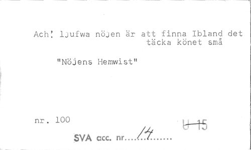 //// Ach! ljufwa nöjen är att finna Ibland det //// täcka könet små //// "Nöjens Hemwist" //// nr. 100 , : 1 r SVA ccc. nk.../...(... ////