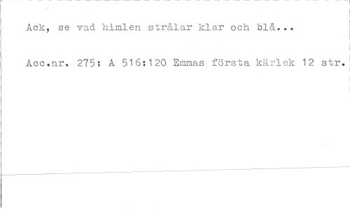 //// Ack, se vad himlen strålar klar och blå... Acc.nr. 275: A 516:120 Emmas första kärlek 12 str. ////