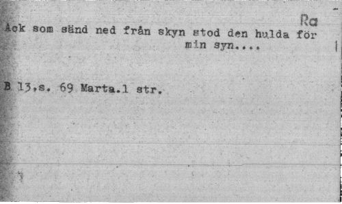 //// Ka //// Ack som sand ned från skyn stod den hulda för //// roin syn... I //// B 13.s. 69 Marta.1 str. //// I; ' i ////