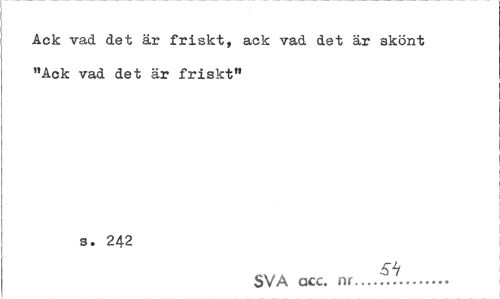 //// Ack vad det är friskt, ack vad det är skönt "Ack vad det är friskt" //// s. 242 //// SVA acc. nr... //// I ////