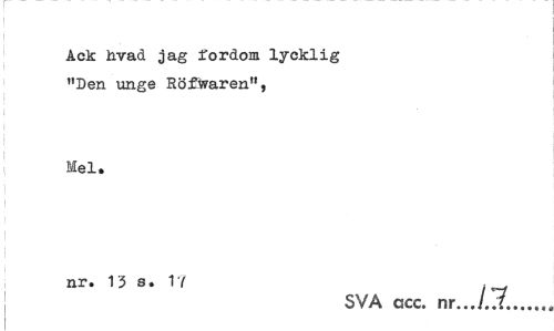 //// Ack livad jag fordom lycklig "Den unge Röfwaren", //// Mel. //// nr. 13 s. 17 . //// SVA ccc. nr.../..7... ////