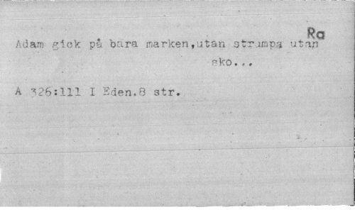//// Ra //// Adam gick på bara marken, jtan strumpa utan //// sko.,. //// A ^26:111 I Bden.8 str. ////