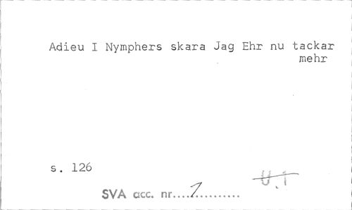 //// Adieu I Nymphers skara Jag Ehr nu tackar //// me hr //// ¦ //// s. 126 ' //// SVA ccc. nr.../T... v i //// _ i ////
