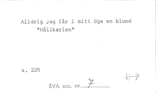 //// Alldrig Jag får i mitt öga en blund "Hållkarlen" //// s. 225 //// v //// SVA ccc. nr...J7... ////