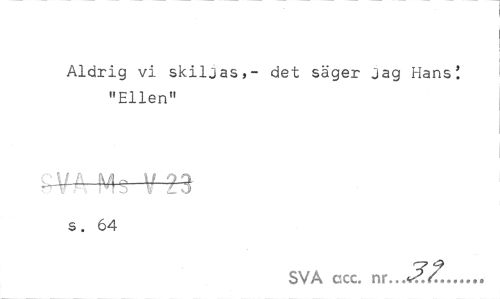 //// t //// I //// Aldrig vi skiljas,- det säger jag Hans! "Ellen" //// J\f-r- v 23- //// s. 64 //// SVÅ ccc. nr, ... ////