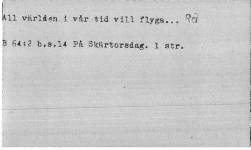 //// Ill värlåen i vår tid vill flyga... 'H //// i //// 3 64:2 b.8.Ii På Skärtorsdag. 1 str. ////