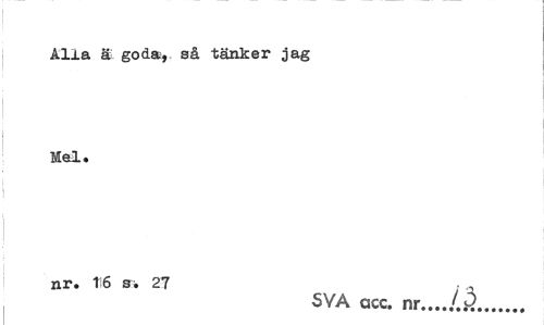 //// Alla ä goda, så tänker jag Mel. //// nr. T6 s^ 27 //// SVA acc. nr.. J5 ////