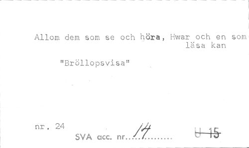 //// Allom dem som se och höra, Hwar och en som //// läsa kan //// "Bröllopsvisa" //// SVA acc. nr. ,/Z... cH5- ////