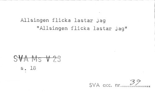 //// Allsingen flicka lastar Jag //// "Allsingen flicka lastar Jag" //// | //// i //// SVA-Ms V 23 //// s. 18 //// SVA ccc. nr...'k... ////