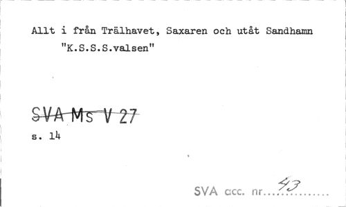 //// Allt i från Trälhavet, Saxaren och utåt Sandhamn "K.S.S.S.valsen" //// 27 //// s. lH //// SVA ccc. nr...'k... ////