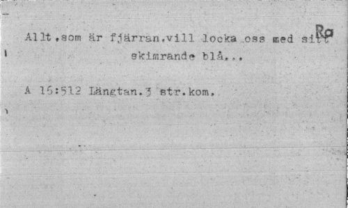 //// Allt »som är f.iärran»vill locka oss med s l skimrande blå.,, //// A 16:512 Längtan. 1 str.kom.. ////