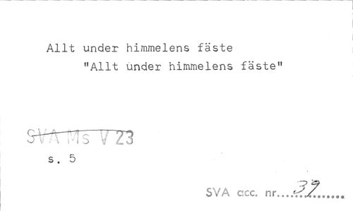 //// Allt under himmelens fäste //// "Allt under himmelens fäste" //// CJU-A——H~!7~0 o « \ ri ^ w £ o //// s. 5 //// SVA ccc. nr.../?^... ////