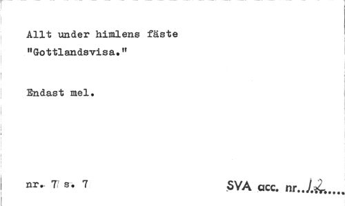 //// Allt under himlens fäste "Gottlandsvisa." //// Endast mel. //// nr.. T S. 7 SVA acc. nr J.*L... ////
