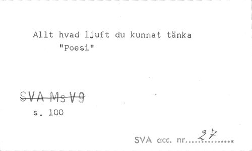 //// Allt hvad ljuft du kunnat tänka "Poesi" //// ^M-Ms-V-^ //// s. 100 //// 9 h //// SVA ccc. nr... ////