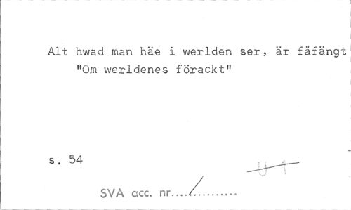 //// Alt hwad man häe i werlden ser, är fåfängt "Om werldenes förackt" //// i //// s. 54 //// SVA ccc. m.../... ////