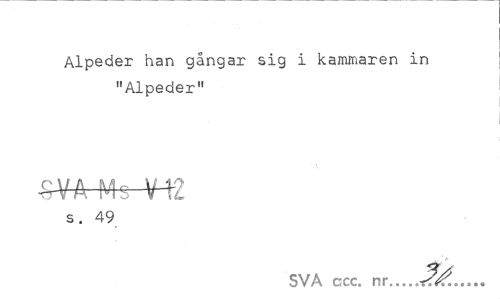 //// Alpeder han gångar sig i kammaren in "Alpeder" //// •S-VA Ms MM //// s. 49 //// SVA ccc. nr...<...*>•• ////