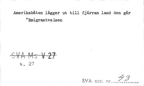 //// Amerikabåten lägger ut till fjärran land den går "EmigrantvaIsen //// ^rVtS-WT- //// s. 27 //// SVA ccc. nr.,,.0... ////