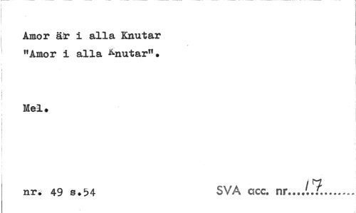 //// Amor är i alla Knutar "Amor I alla ^nutar". //// Mel. //// nr. 49 s.54 SVA acc. nr...(.7... ////