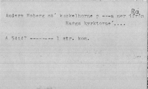 //// ga //// Ander« Moberg ra kackelhorne p---a ner i.rr ån //// Hargs "kyrktorn'0'... //// A 54 :.47 --- ] str. kom. ////