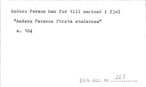 //// Anders Person han for till marknad i fjol "Anders Persons första stadsresa" s. 104 //// SVA acc. nr...£!t... ////