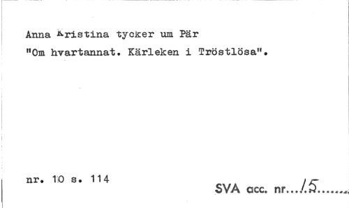 //// Anna Kristina tyc&er um Pär //// "Om hvartannat. Kärleken i Tröstlösa". //// nr. 10 s. 114 > //// SVA ccc. nr.../.P... ////