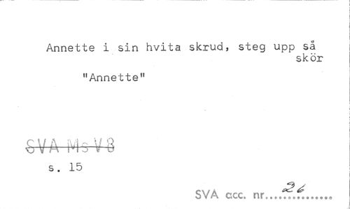 //// Annette i sin hvita skrud, steg upp så //// skör //// "Annette" //// rM / A ' • I O //// b v M ivl J V -b s. 15 //// SVA ccc. ... ////