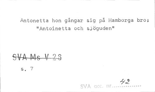 //// Antonetta hon gångar sig på Hamborga bro; "Antoinetta och sjöguden" //// SVA Ms V 4-S //// s. 7 //// C\/ A QCC« UTo o a o o o O o 9 o » O ® • • ////