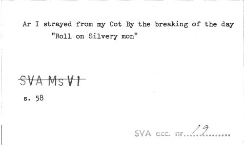 //// Ar I strayed from my Cot By the breaking of the day "Roll on Silvery mon" //// ¦SVA Ms V f //// s. 58 //// SVA ccc. nr. /.I... ////