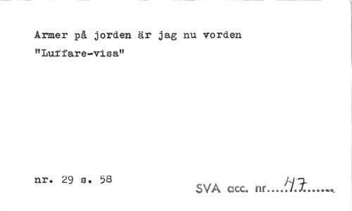 //// Armer på jorden är jag nu. vorden "Lurfare-visa" //// nr. 29 s. 58 , un //// SVÅ ccc. nr...J.J...^ ////