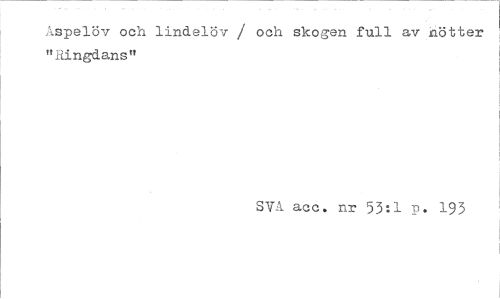 //// Aspelov ocn lindelöv / och skogen full av nötter "iiingdans" //// SVA acc. nr 53:1 P. 193 ////