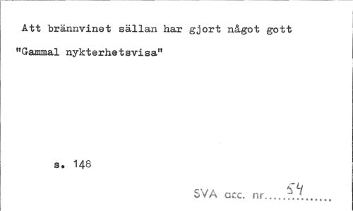 //// Att brännvinet sällan har gjort något gott "Gammal nykterhetsvisa" //// s. 148 //// SVA ccc. nr.../... ////