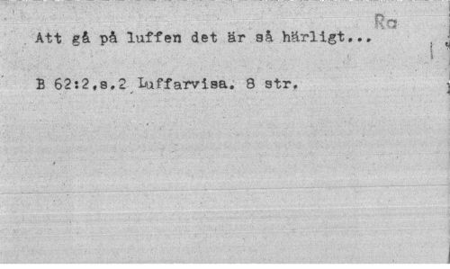 //// Att gå på luffen det är så härligt,.. B 62:2,8,2 Luffarvisa. 8 str, j //// ' ^ - - : - 1 ////