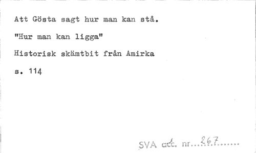 //// Att Gösta sagt hur man kan stå. "Hur man kan ligga" Historisk skämtbit från Amirka s. 114 //// SVA oé. nr...£f.?... ////