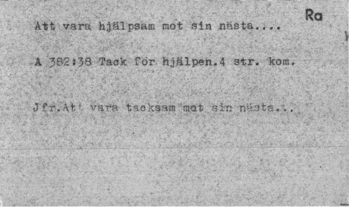 //// Att vara hjälpsam mot sin nästa... ¦ //// A ?82:38 Taok för hjälpen.4 str. kora. //// Jfr. Af. vara tacksam 'mat. sin-nästa ..v. . //// - ' . "'• ' . ,' * " \ - * : • : .. • ' ; - -t V ' -1 < -' " ' ' ' ' //// -. c .v: . . _ .-. . •• ' v • , ' .,-•'• • ' • .- ,, -- - •"; r. . ¦/ .,> ' ¦¦: ' ////