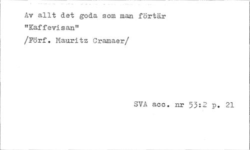//// Av allt det goda som man förtär //// "Kaffevisan" //// /Förf. Mauritz Cramaer/ //// 3YÅ acc. nr 53:2 p. 21 ////