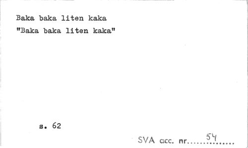 //// Baka baka liten kaka "Baka "baka liten kaka" //// s. 62 //// SVA ccc. nr... ////