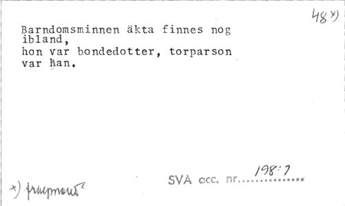 //// Barndomsminnen äkta finnes nog ibland, //// hon var bondedotter, torparson var han. //// /<9f'; //// x . ^ SVA ccc. nr... //// -yHjyrvmX ////