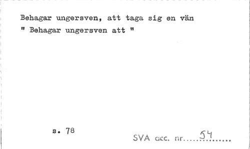 //// Behagar ungersven, att taga sig en vän " Behagar ungersven att 11 //// s. 78 XL, //// SVA acc. r.r... ////